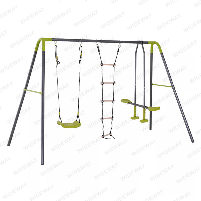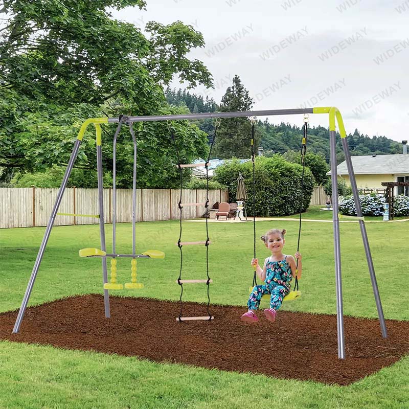 Otroška gugalnica 3 v 1 za dvorišče, jadralno letalo in plezalna lestev, ki jo je oblikoval in izdelal WIDEWAY®, je eden od pustolovskih projektov za vaše otroke. Primerno za otroke, stare od 3 do 10 let. Poskrbite, da imate na svojem dvorišču dovolj prostora za namestitev gugalnice in zagotovite varno igralno površino okoli nje. Otroci se lahko igrajo skupaj in uživajo v neskončni zabavi na prostem na tej zmogljivi gugalnici.