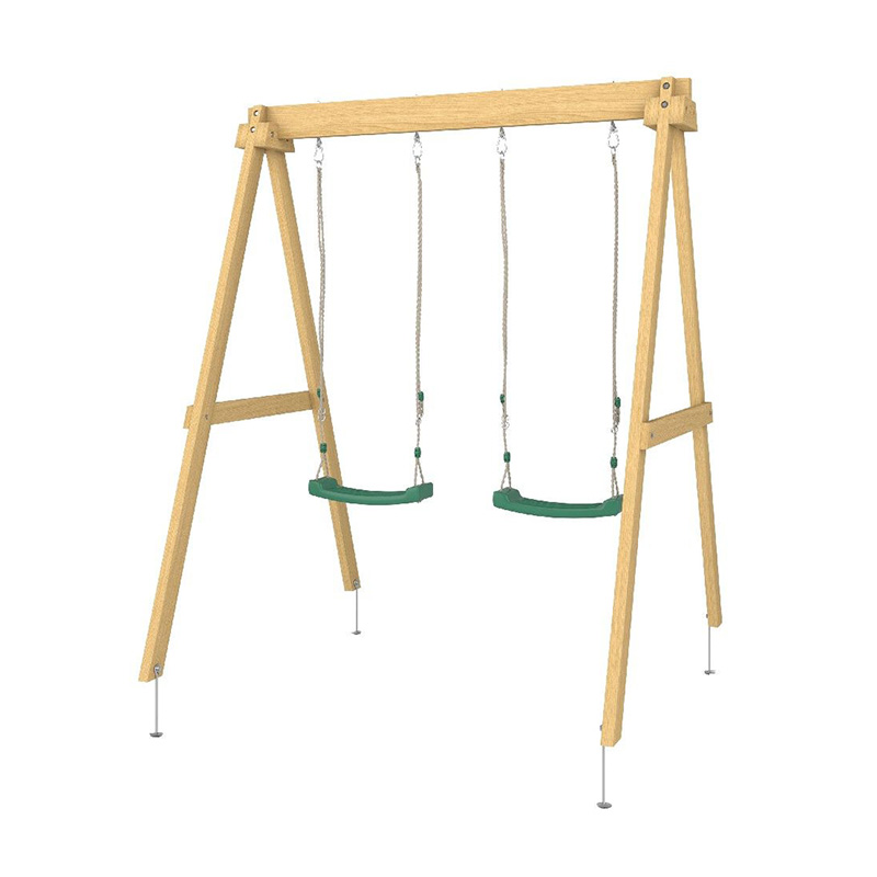 S stabilnimi otroškimi nihanji otroškega dvojnega nihanja dvojnih nihanj se bodo vaši otroci odpravili na vznemirljive dogodivščine. Ta lesena gugalnica ima poseben fleksibilen nihajni konektor, ki nadomešča plastične in kovinske konektorje, ki so potrebni za okrogli les. Zahvaljujoč temu zamahu lahko dvojni zamah zlahka spremenite v en sam zamah z rahlo štrlečem žarku. Na koncu lahko vaš mali pustolovec obesi plezalno mrežo ali opico. Druga prednost je, da stabilna nihajna komplet zaradi svoje hladne zasnove prilega tudi manjše vrtove.