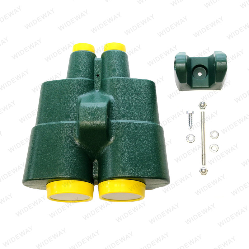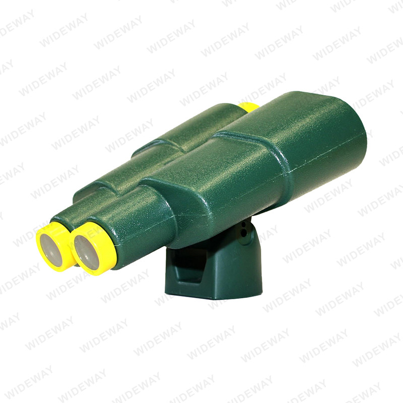 Izjemno velik plastični daljnogled igrače Swing Set Dodatek vključuje ohišje in podnožje z igrivim dizajnom daljnogleda. Na voljo je v standardni zeleni in rumeni barvni kombinaciji, na zahtevo pa lahko dodate barve po meri. Daljnogled je zasnovan tako, da je trden in trpežen, ki lahko prenese grobo igro na prostem. Zasnova skrbi za otroško domišljijo in zanimanja, zagotavlja realističen občutek in omogoča otrokom, da prilagodijo kot daljnogleda, ki ga lahko dvignejo navzgor ali navzdol, tako da lahko podrobno raziskujejo svojo okolico.