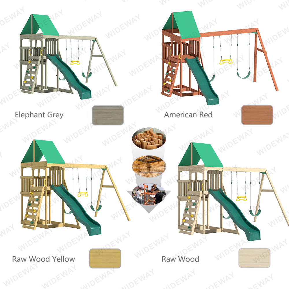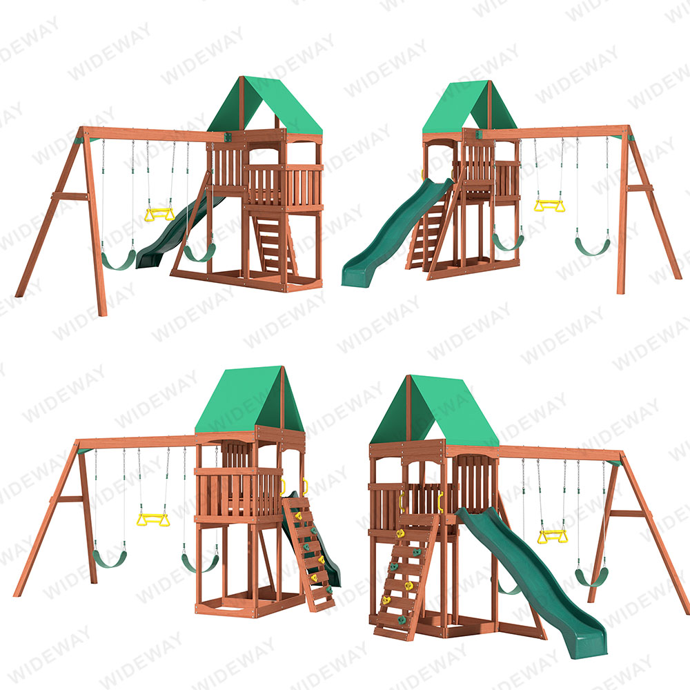 Kakovostni zunanji leseni kompleti za igranje in gugalnice prinašajo ure razburjenja na vaše dvorišče. Kot vodilni proizvajalec in dobavitelj na Kitajskem je Wideway predan preoblikovanju vašega zunanjega prostora v kraj, kjer lahko cveti ustvarjalnost vaših otrok. Ta najnovejši gugalnik po meri zagotavlja vzdržljivost in zabavo za vse.
