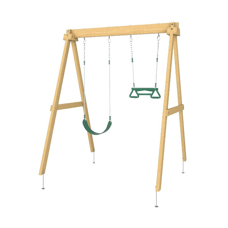Ta leseni dvojni nihajni kompleti imajo poseben fleksibilen nihajni konektor, ki nadomešča plastične in kovinske konektorje, ki so potrebni za okrogli les. Zahvaljujoč temu zamahu lahko dvojni zamah zlahka spremenite v en sam zamah z rahlo štrlečem žarku. Na koncu lahko vaš mali pustolovec obesi plezalno mrežo ali opico. Druga prednost je, da stabilna nihajna komplet zaradi svoje hladne zasnove prilega tudi manjše vrtove.